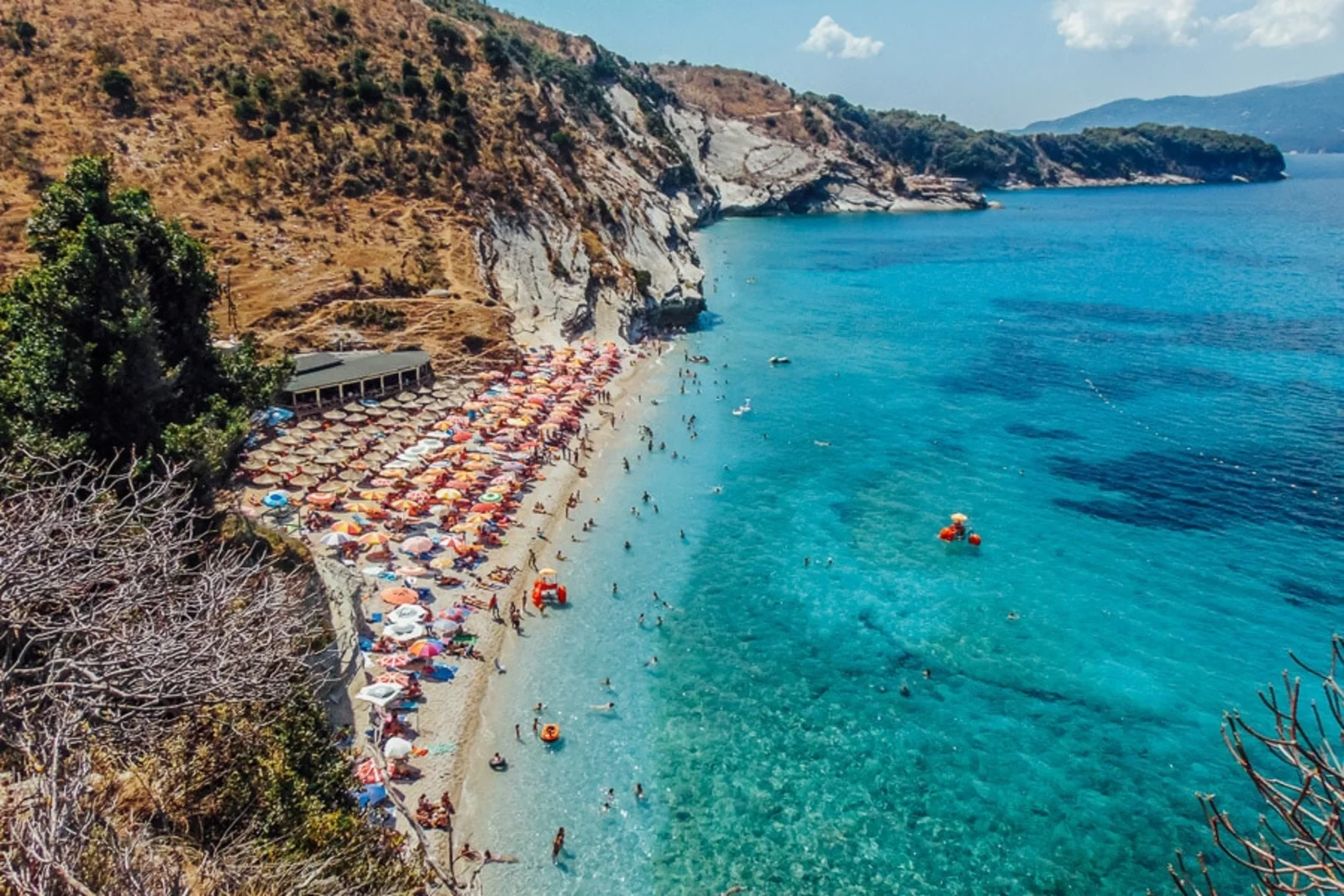 Legend has it that the Albanian pirate Haxhi Ali used this cave to hide treasure plundered from passing ships. Whether or not the treasure exists, the cave itself is the real gem. Your speedboat enters through the narrow mouth into a vast chamber where you can swim in water that glows an otherworldly shade of blue. The acoustics inside the cave create an unforgettable atmosphere — bring a waterproof camera.