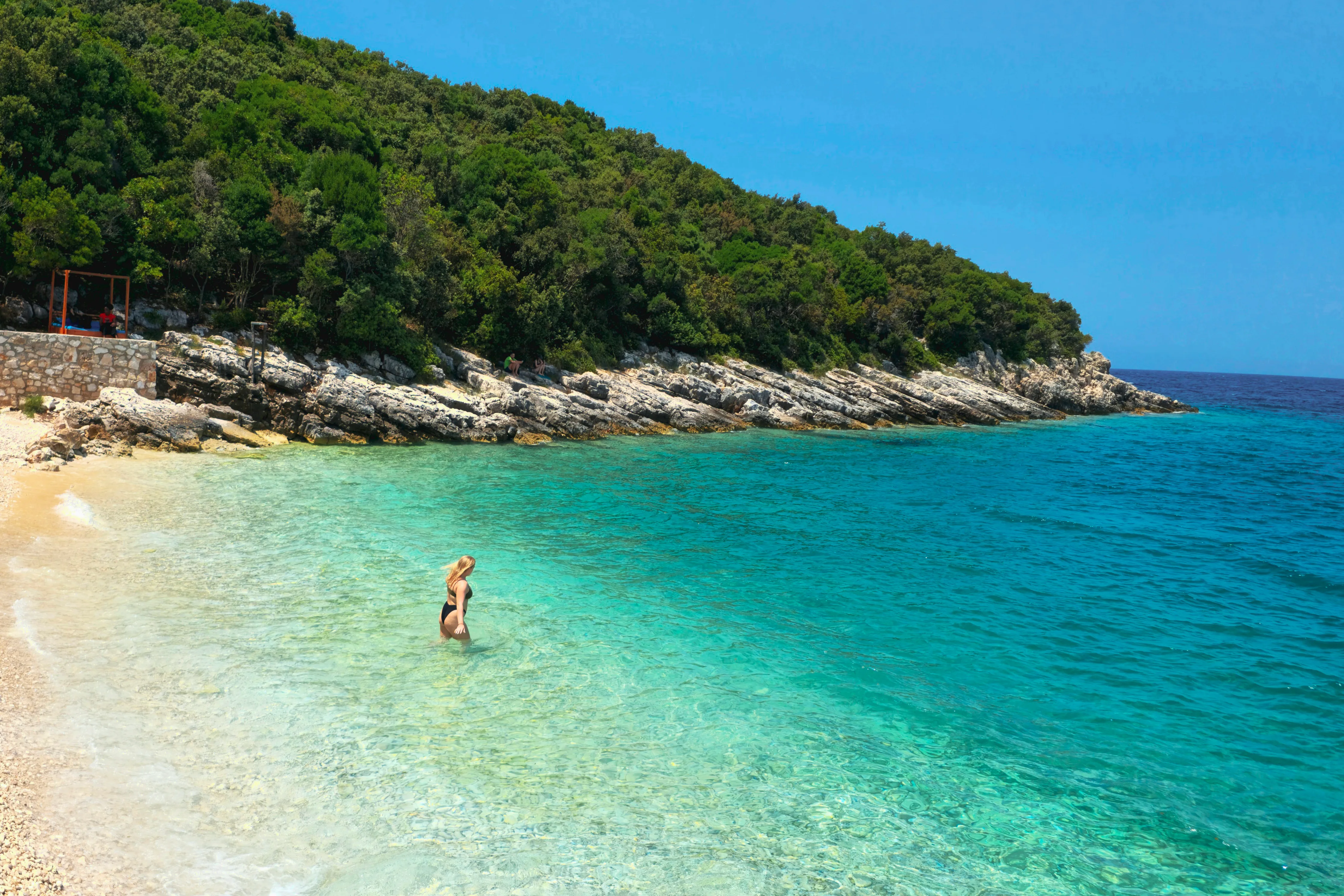 A pristine peninsula with turquoise waters, hidden caves, and the medieval Skanderbeg Castle. Only accessible by boat or winding coastal road — the Adriatic at its wildest.