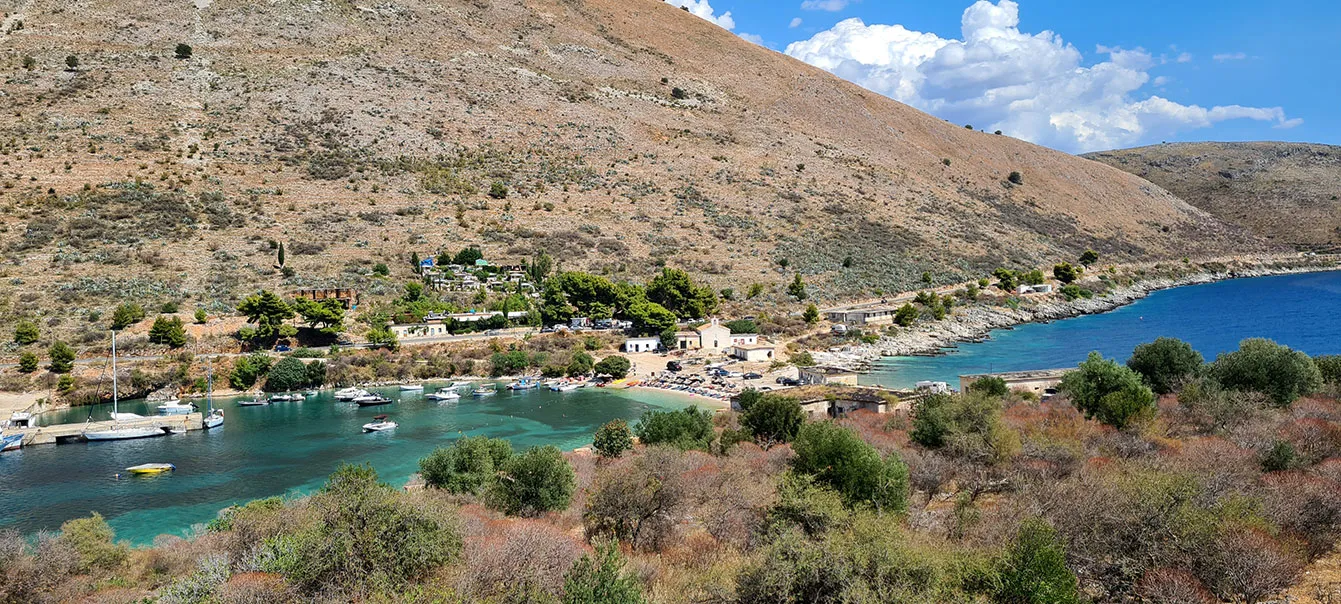 About 30 minutes south of Dhërmi, Ali Pasha's fortress sits on a small peninsula jutting into a perfectly sheltered bay. Built in the early 19th century by the powerful Ottoman-Albanian ruler Ali Pasha of Ioannina, the triangular fortress is remarkably well-preserved. The bay itself is one of the most beautiful natural harbours on the Albanian coast — crystal-clear water surrounded by wild, undeveloped hills.