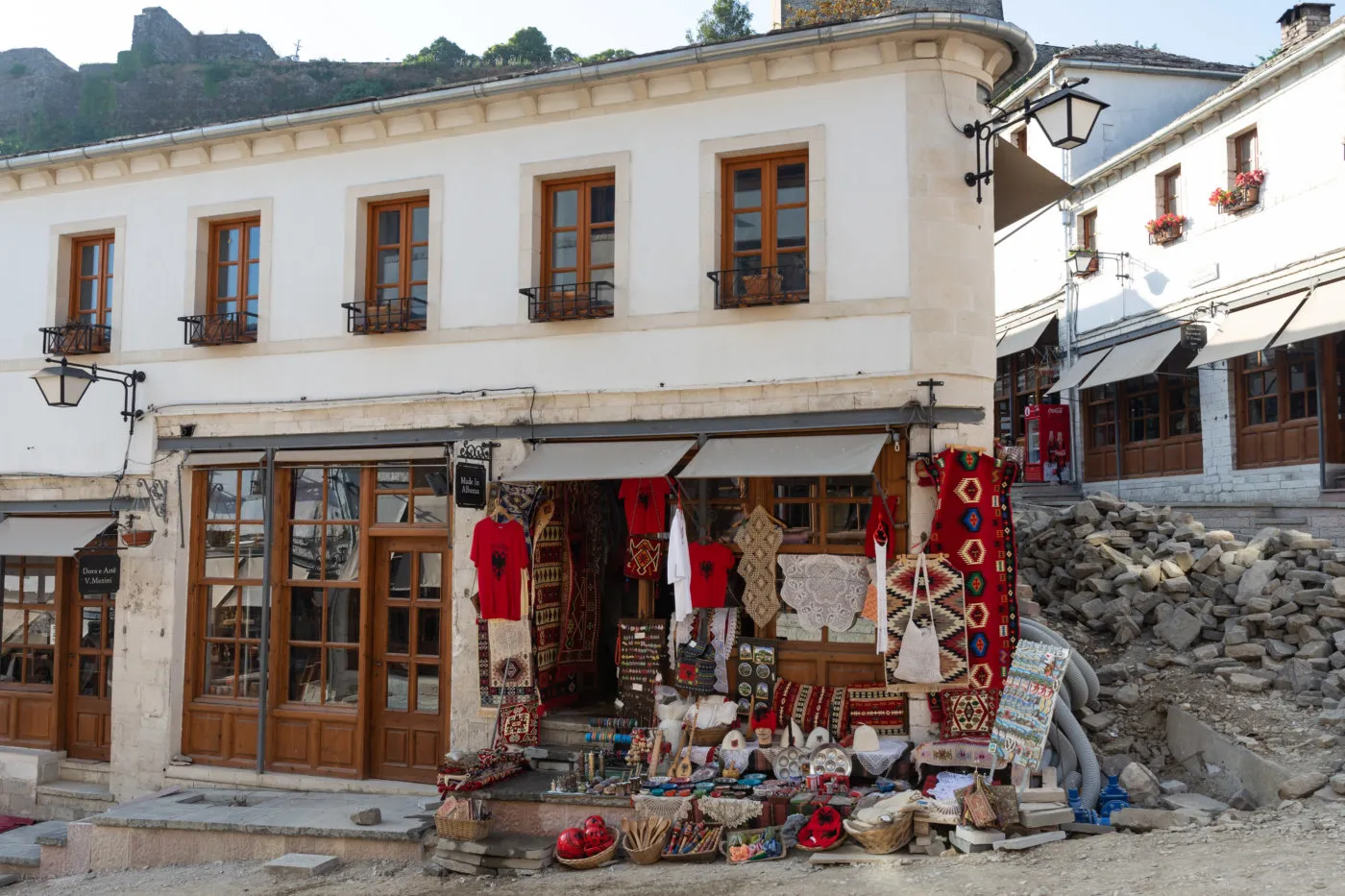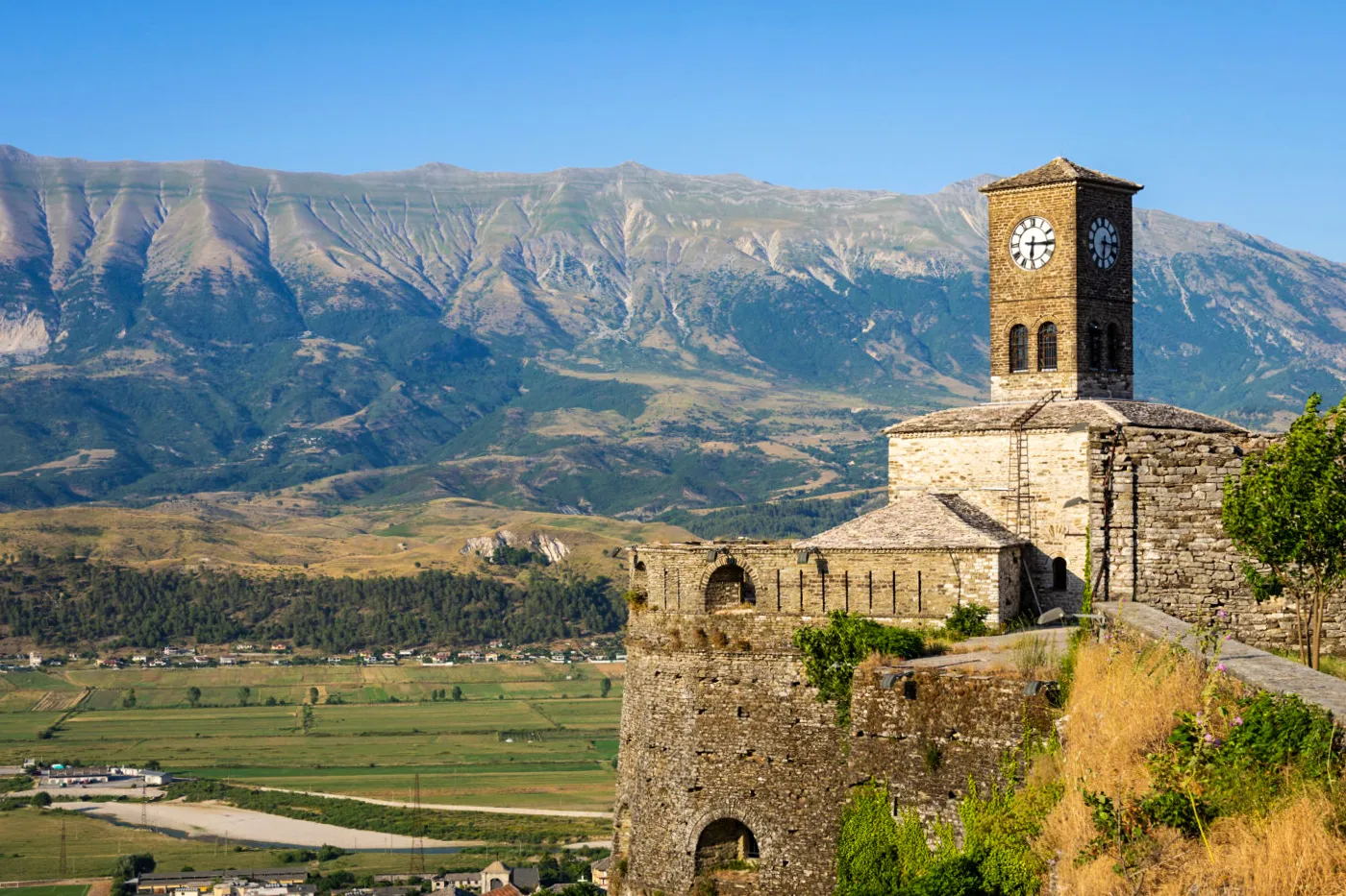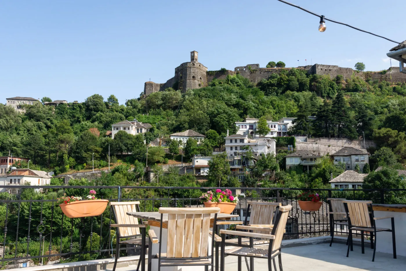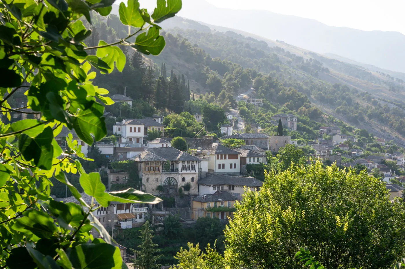 Multiple terraces and vantage points around the castle and upper town offer sweeping views over the Drino Valley and the stone rooftops cascading down the hillside — one of the most photographed panoramas in all of Albania.
