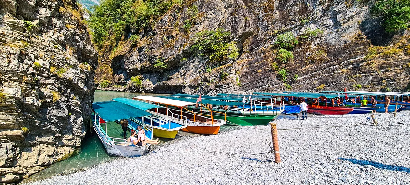 Known as the 'Thailand of Albania' for its emerald-green waters and dramatic canyon walls, the Shala River is one of Albania's most spectacular natural wonders. Accessible by boat from the Koman Ferry, the journey passes through deep gorges with sheer rock faces rising hundreds of metres. The river is swimmable in summer — crystal clear and breathtakingly beautiful.