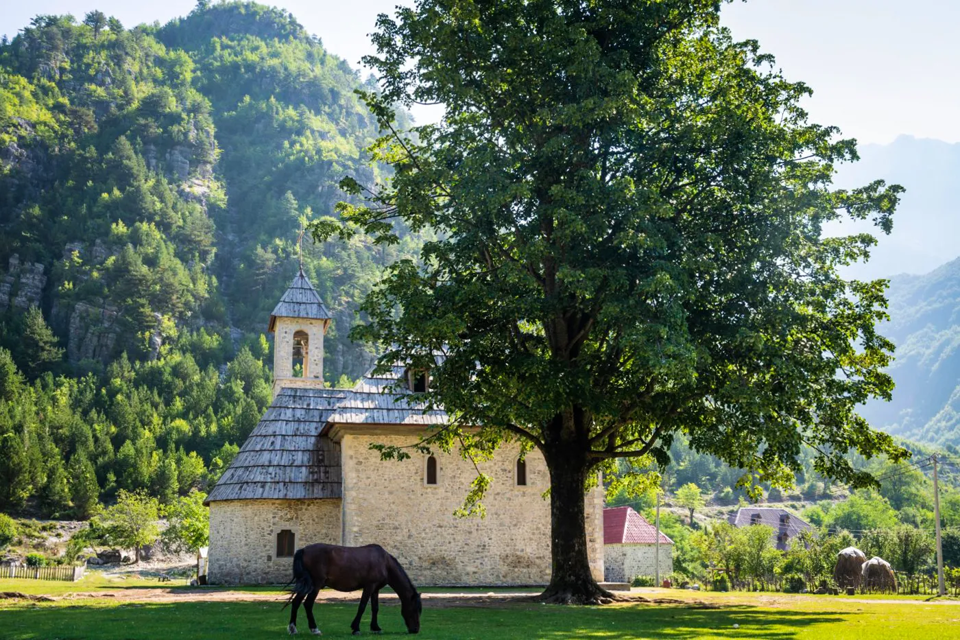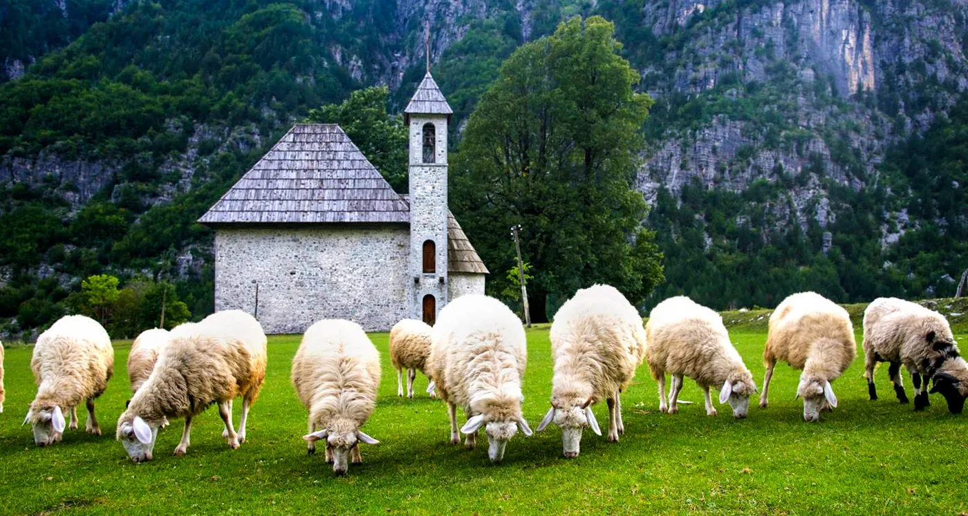 The small Catholic church of Theth, with its stone walls and mountain backdrop, is one of the most photographed buildings in Albania. Closed during the communist era's ban on religion, it has been lovingly restored and once again serves the village's Catholic community — a rare sight in majority-Muslim Albania.