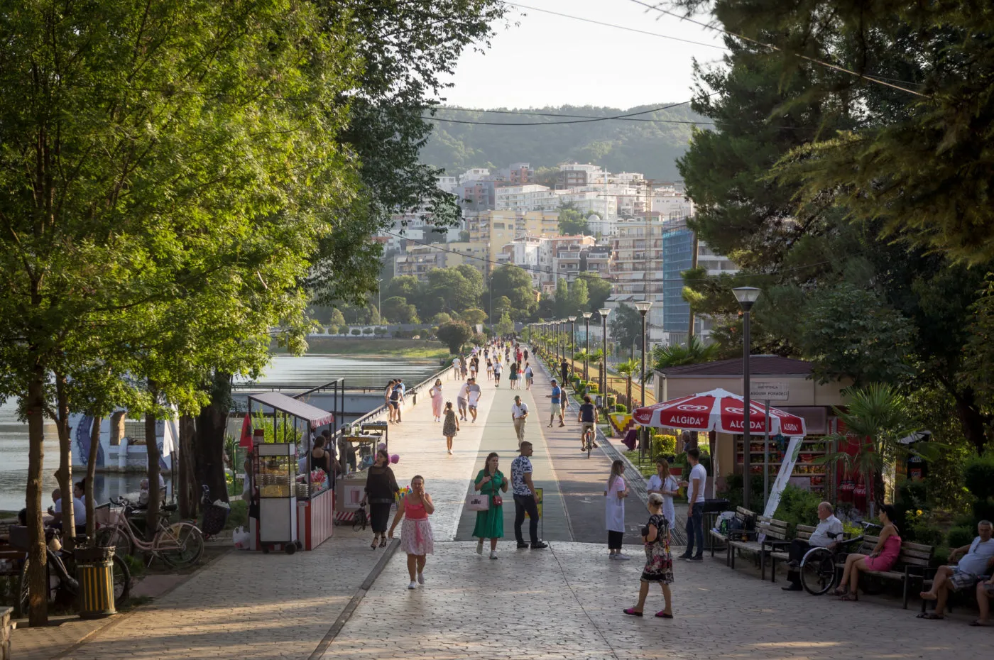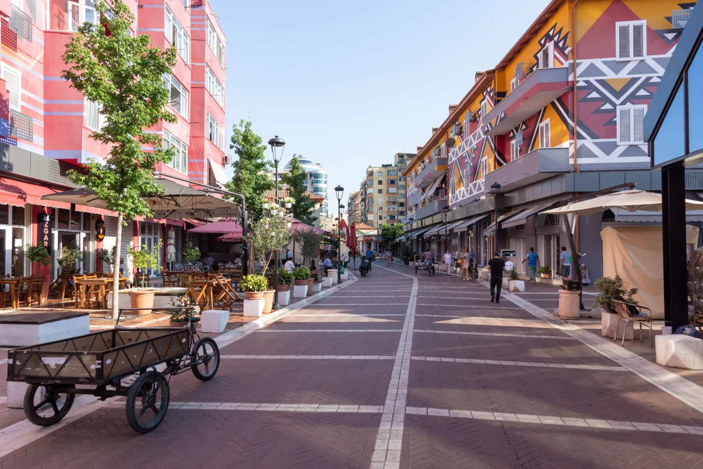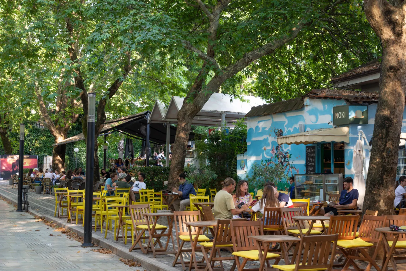Hot and lively. Tirana buzzes with open-air bars, rooftop restaurants, and summer festivals. Many locals leave for the coast, so the city is less crowded but very warm.