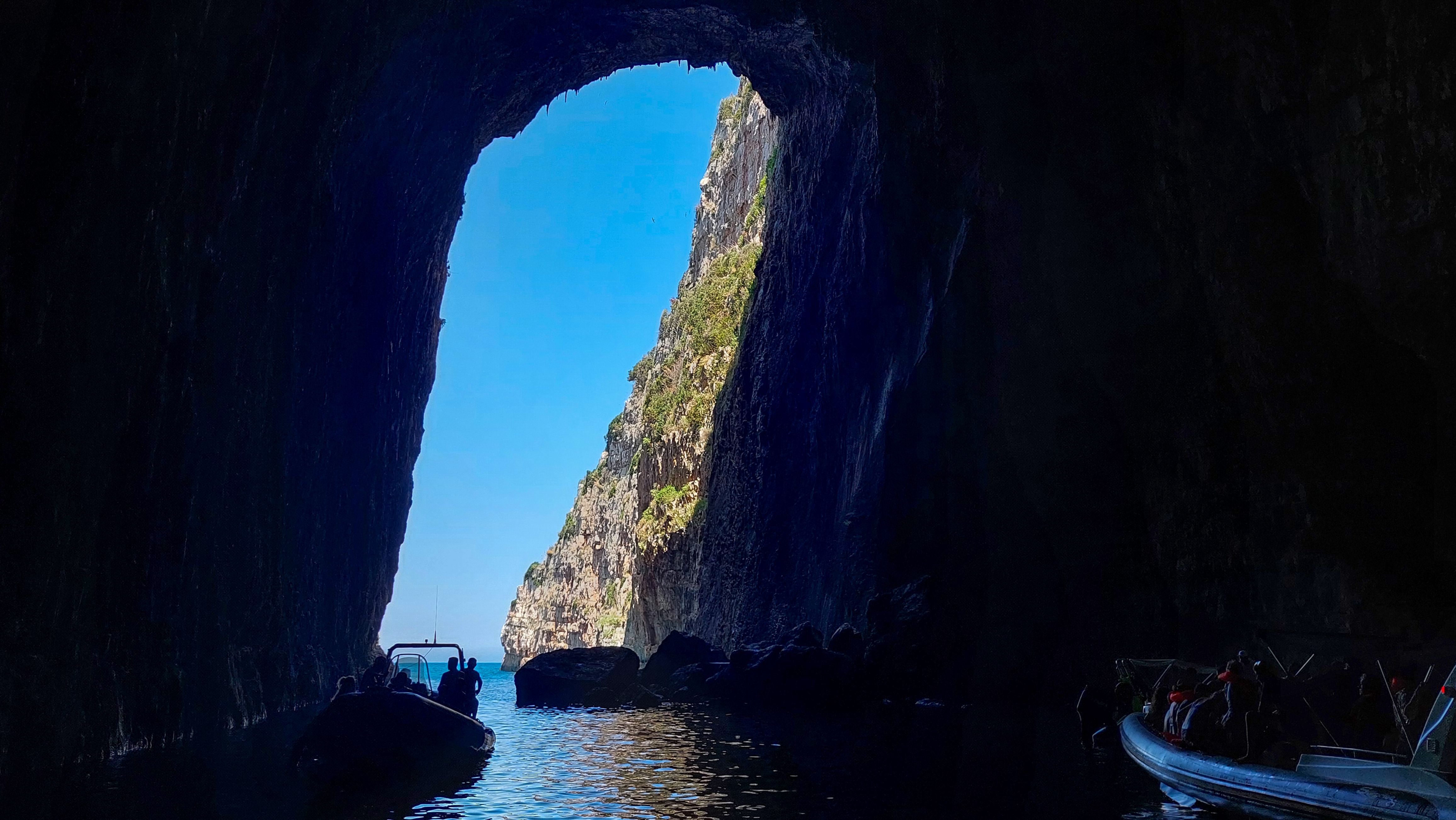 Next, the boat takes you to the legendary Haxhi Ali Pirate Cave. Only reachable by boat, this giant grotto is a natural wonder. Inside, sunlight reflects off the emerald water and limestone formations. Your guide will share stories of Haxhi Ali, the pirate who once hid here. Swimming is not allowed inside for safety reasons, but it’s the perfect spot for photos.